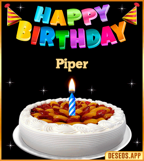 Make your loved one happy on their special day by sharing this amazing Piper Cake Happy Birthday Gif. Let your loved one admire this beautiful animated birthday cake with burning candles and wish them a Happy Birthday in the most creative way! Make their day even more memorable with this amazing GIF. Its eye-catching content and creative design make it perfect for expressing your birthday wishes.