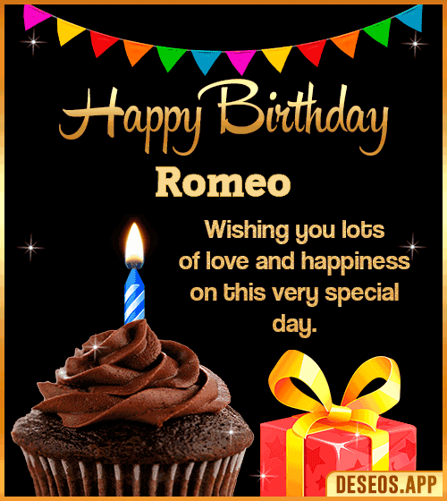 Surprise your loved one with these extraordinary images. Unique, original and artistic designs make this image beautiful and of good quality. Send them these cakes with "Happy Birthday Romeo" written on them and let them feel your love on their special day! An animated image with cakes and lit candles, fireworks, balloons or personalized messages is the best way to wish your loved one 'Happy Birthday Romeo'.