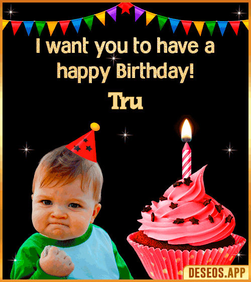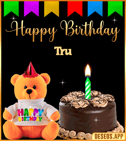 Surprise your loved one with these extraordinary images. Unique, original and artistic designs make this image beautiful and of good quality. Send them these cakes with "Happy Birthday Tru" written on them and let them feel your love on their special day! An animated image with cakes and lit candles, fireworks, balloons or personalized messages is the best way to wish your loved one 'Happy Birthday Tru'.